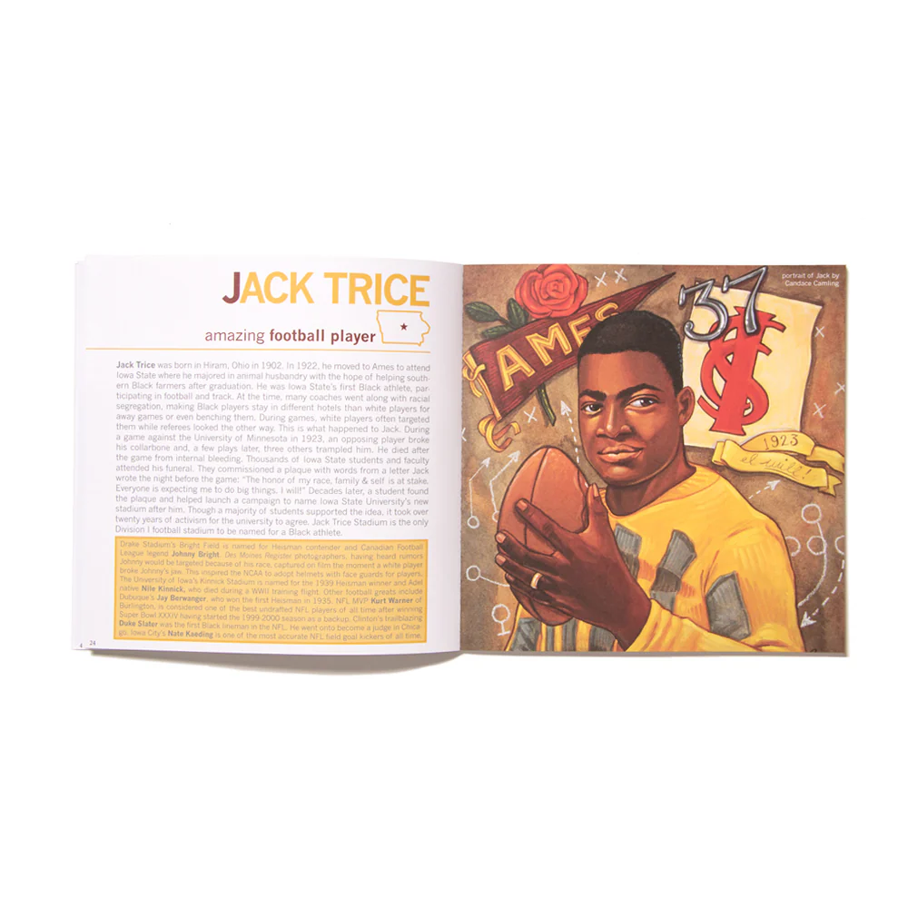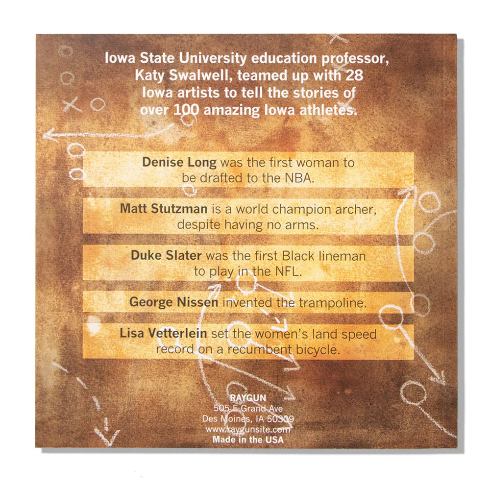 Illustrated by dozens of Iowa artists, Amazing Iowa Athletes highlights the stories of nearly 100 Iowa athletes from different historical eras and diverse backgrounds. Available for purchase on RAYGUN's website, in their stores, and other locally-owned Iowa bookstores.